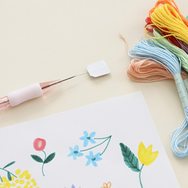 Cette box créative contient tous les éléments nécessaires pour confectionner une jolie décoration murale printanière et colorée en punch needle.