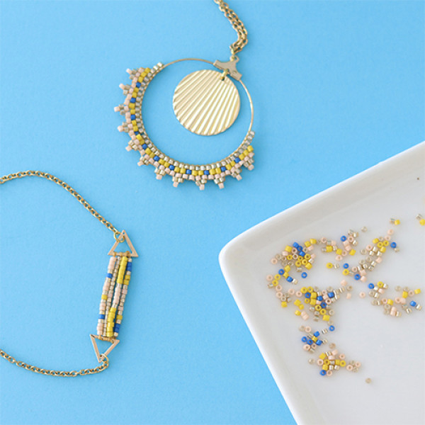 Cette technique est la plus plébiscitée du web et des réseaux sociaux par les #perlesaddict, elle permet de réaliser des motifs tous plus beaux les uns que les autres. Dans ce kit vous aurez de quoi fabriquer un très joli pendentif ainsi qu'un bracelet rafiné. Les tons jaunes et bleutés se complètent pour une parure à porter en toute occasion.