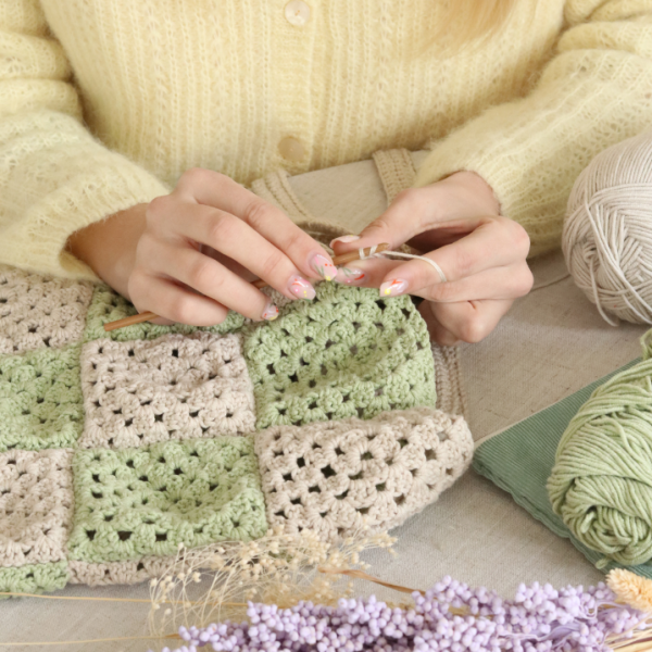 Dans cette box, nous vous proposons de réaliser un sac en granny squares !