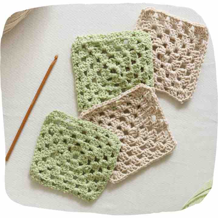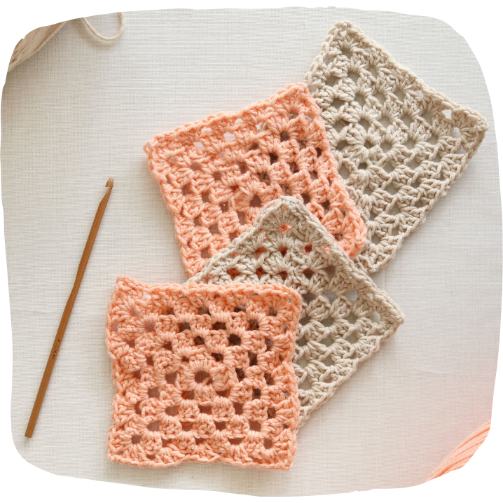 Ce projet est accessible pour les débutants. Dans cette box vous apprendrez les points de base du granny square et à crocheter une anse 🌈