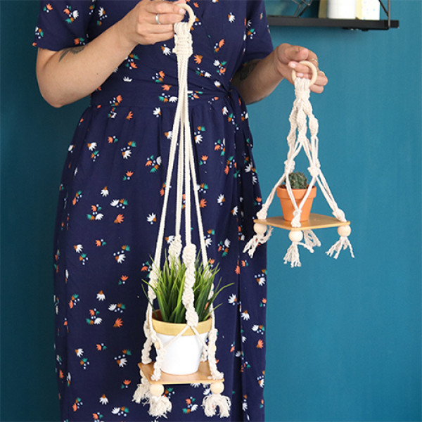 Avec ce kit complet vous allez pouvoir apprendre les différents noeuds nécessaires à la réalisation d'un porte-plante tendance. Pour apportez une touche green et DIY à votre intérieur, c'est la box qu'il vous faut. Vous aurez le choix entre 2 modèles de suspension : longue ou courte pour s'adapter à l'endroit où vous souhaitez l'accrocher chez vous.
