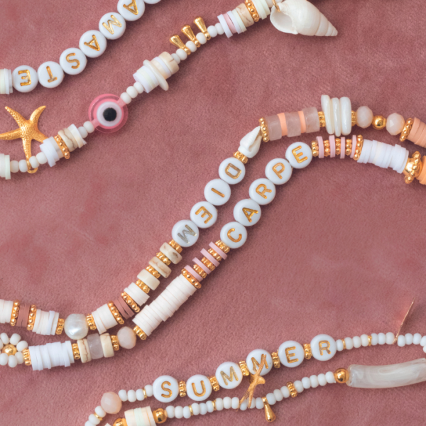 Vous retrouverez dans cette jolie box des perles blanches, des coquillages, des intercalaires dorés, des perles tubes et des perles naturelles. Il ne vous reste plus qu'à trouver votre inspiration et confectionner votre chaîne de téléphone ou vos bracelets d’été !