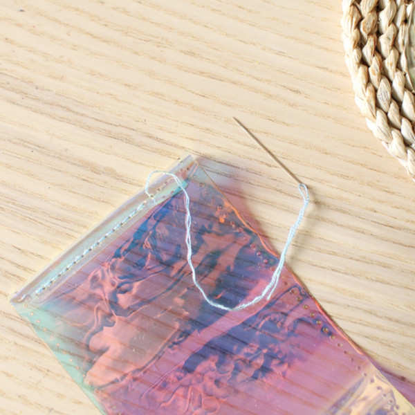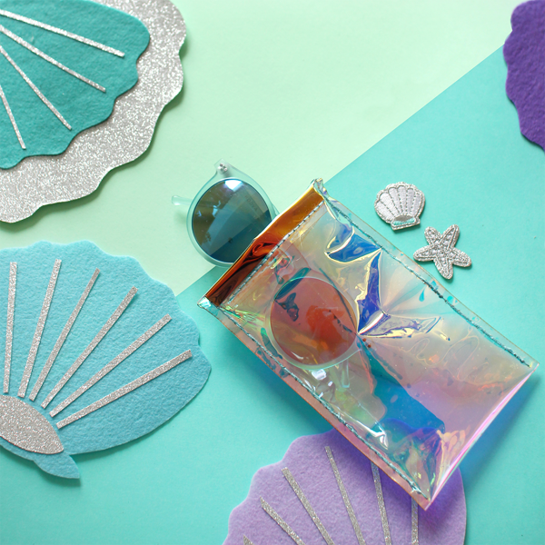 La matière holographique est pré-percée pour vous faciliter la tâche et réaliser la totalité de cette création en très peu de temps. Les reflets colorés rendront votre étui à lunettes de soleil unique sur les plages cet été ou fera son effet au bureau à la rentrée pour vos lunettes de vue.