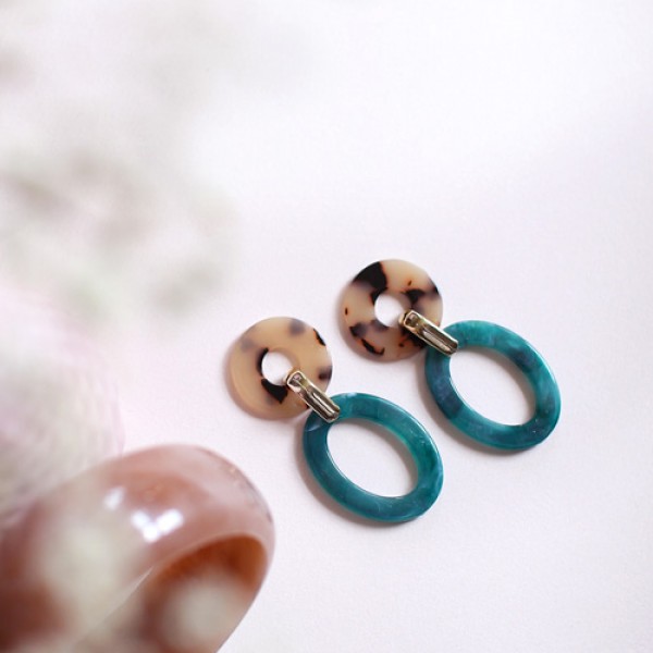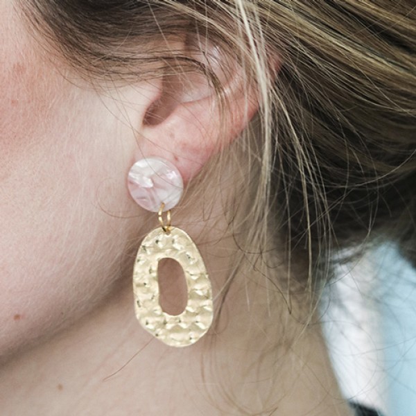 L'acétate est de retour sur le devant de la scène. Cette matière s'adapte tout particulièrement à la création de bijoux taille maxi comme des boucles d'oreilles.