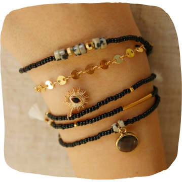 Vous avez le choix entre un bracelet perlé multirang blanc ou un bracelet perlé multirang noir !