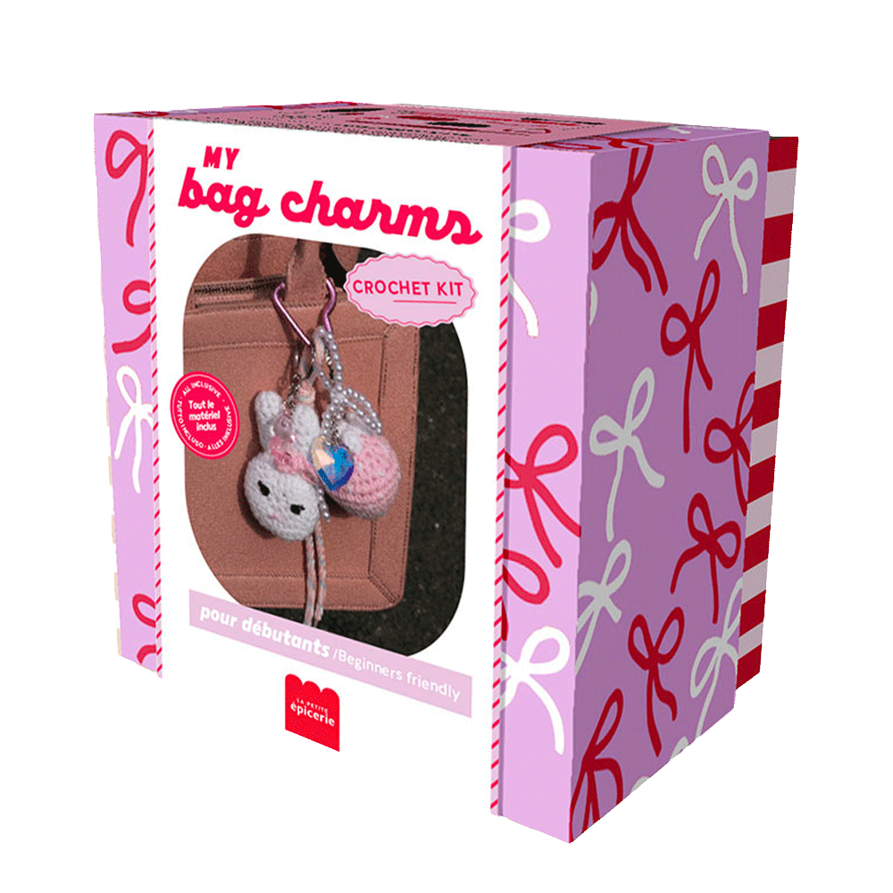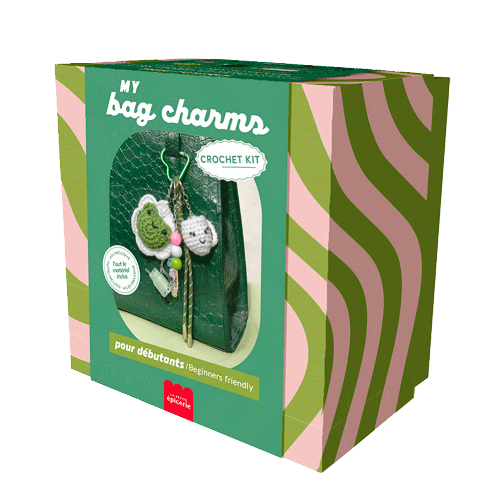 Découvrez nos kits Bag Charms et créez un accessoire tendance à accrocher partout. À l’intérieur, tout le nécessaire pour réaliser votre charm au crochet, pas à pas. Il ne vous reste plus qu’à choisir votre univers parmi nos 4 kits aux styles affirmés : Lucky Pepper, Glam Pink, Coffee Time ou Matcha Club.