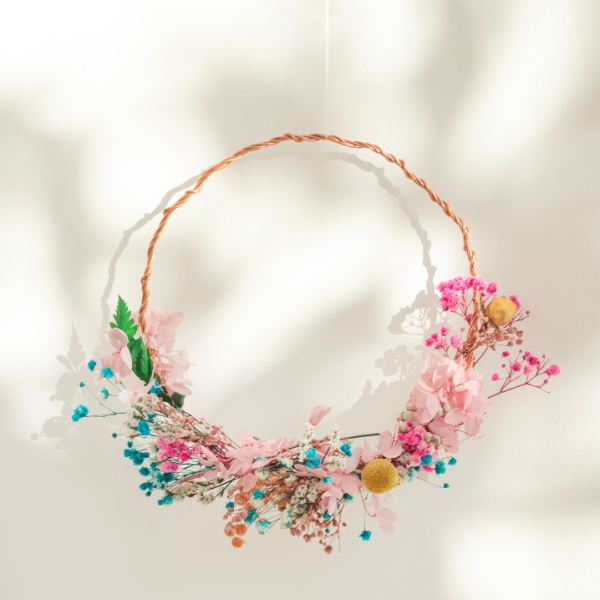 Une fois réalisé votre couronne apportera une touche de couleur à votre intérieur. Elle pourra être installée dans un salon, une chambre d'enfant ou bien même une entrée !
