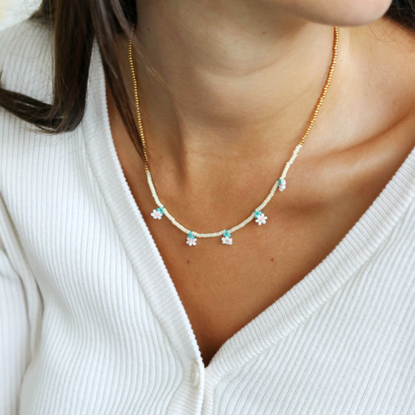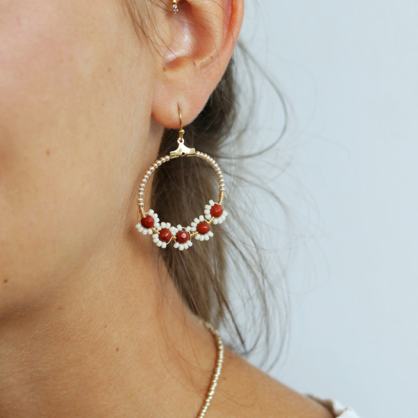 Cette jolie boîte contient tout le matériel nécessaire pour réaliser une paire de boucles d'oreilles, un collier et un bracelet en perles miyuki, en rocailles miyuki et en perles naturelles.