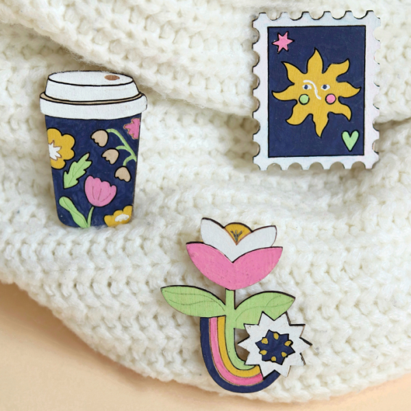 🎨 3 sets de broche en bois (dessinées en exclusivité par notre épicière Maeva)